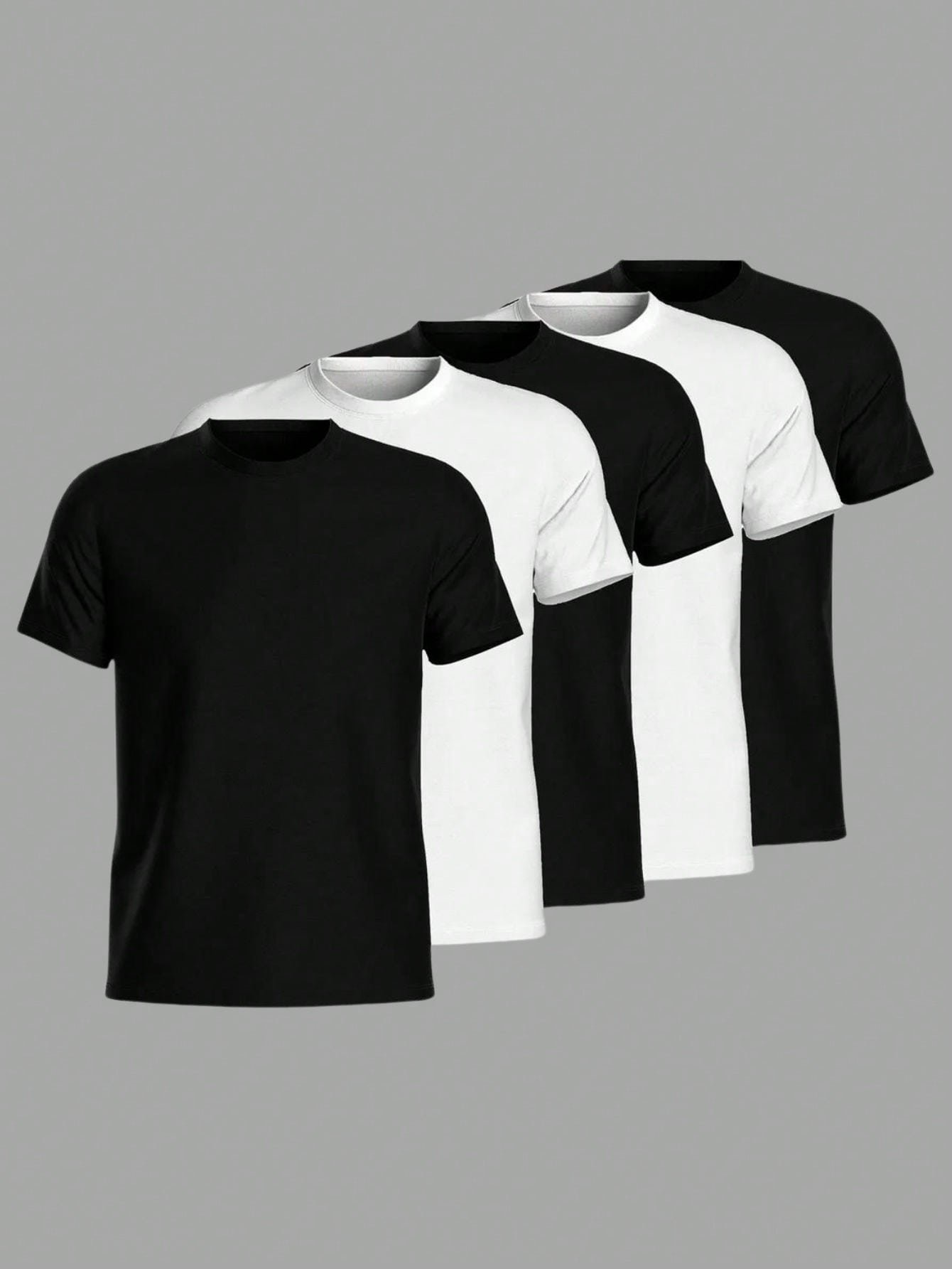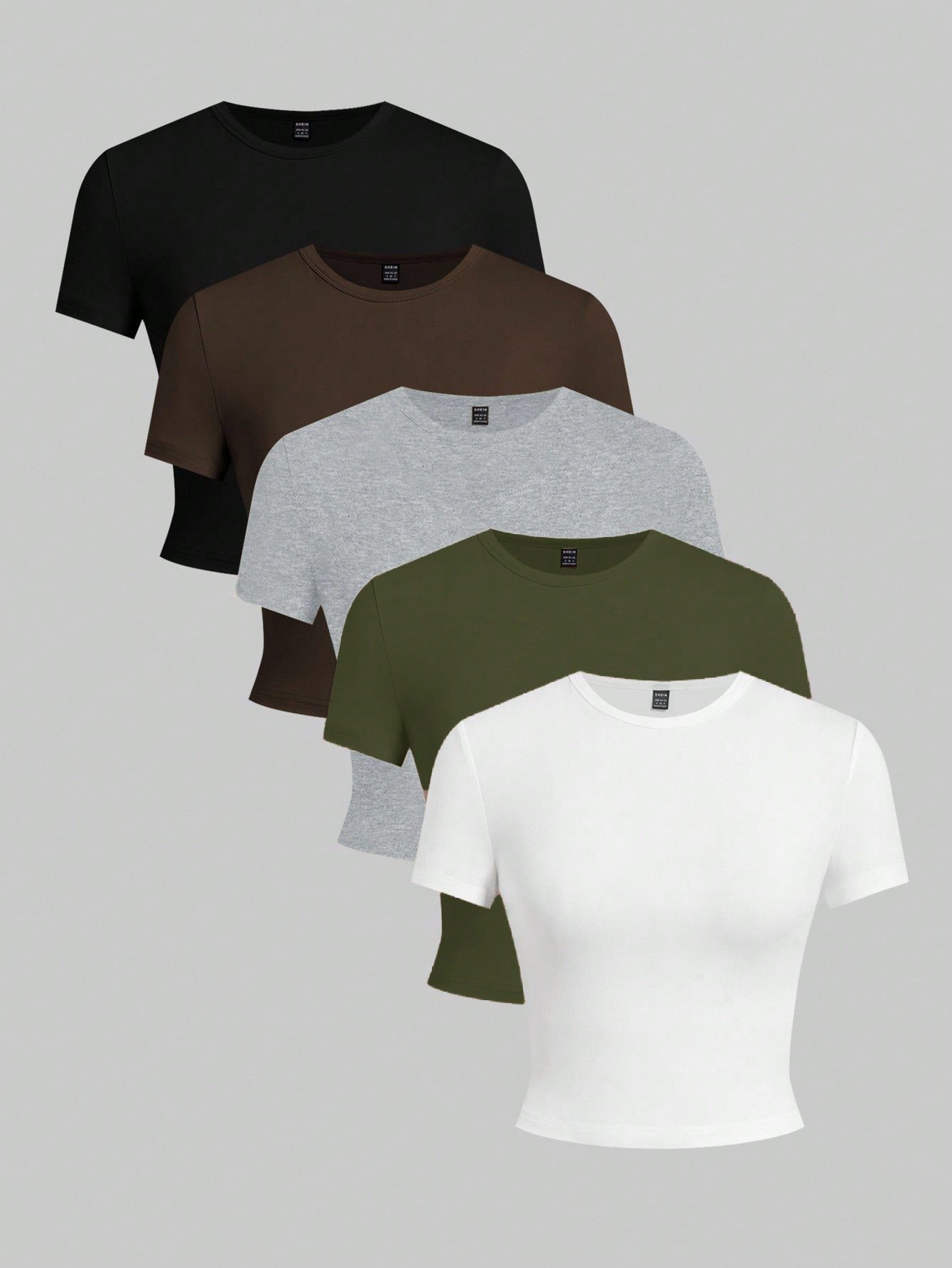 SHEIN EZwear 5 peças/Conjunto Camisetas Básicas de Cor Sólida Ajustadas de Manga Curta |
