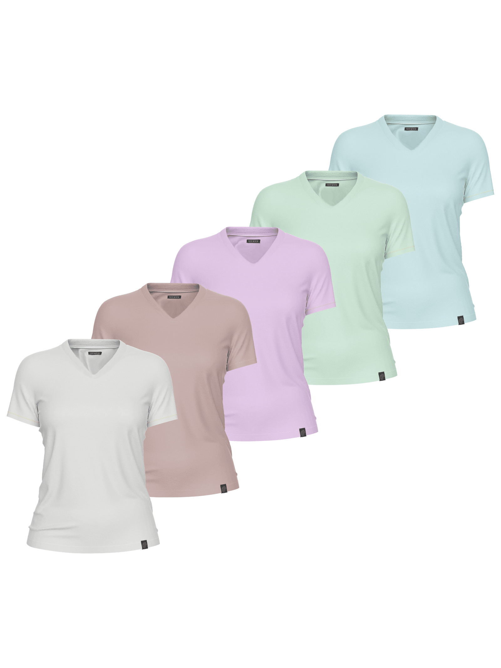 Kit 5 Camiseta Feminina Gola V Básica Algodão |