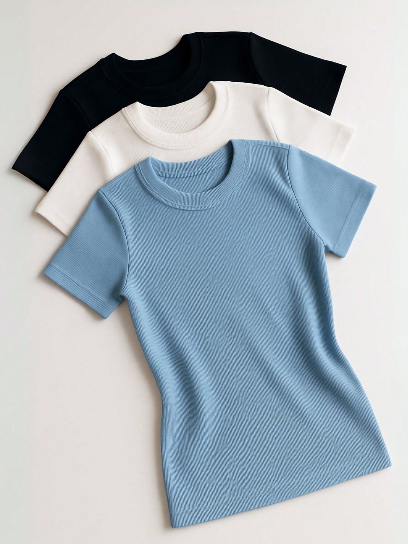 SHEIN LUNE 3 peças/Conjunto Camisetas Femininas Casuais de Gola Redonda |